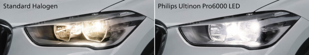 Wechsel jetzt die Halogenlampen Deiner Scheinwerfer mit den Philips Ultinon Pro6000 LED-Nachrüstlampen und erlebe bahnbrechende Helligkeit mit Straßenzulassung.